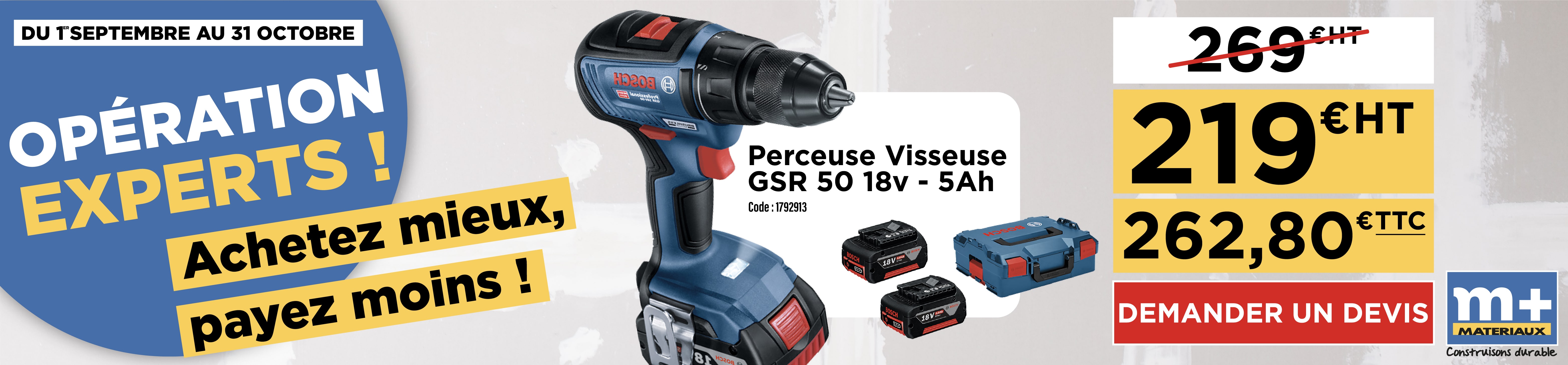 Du 1 septembre au 31 octobre 2025, c'est l'Opération Experts chez M+ Matériaux !